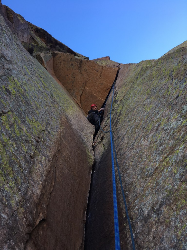 We kind of shot ourselves in the foot on this one because we didn’t bring enough wide gear, which resulted in a lot of cam bumping and some serious runouts. I can’t remember what exactly we had, but definitely not enough 3s for the route. Spicy.