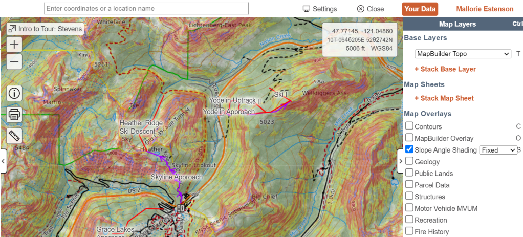 If you are lacking for GPX tracks, a quick and dirty way to get some ideas is to google the zone you’re interested in, for example: “Snoqualmie Pass GPX Track Caltopo.” Just know that it’s one of those ‘hard sayin’ not knowin’ situations where you won’t know who made the track and how reliable they might be.